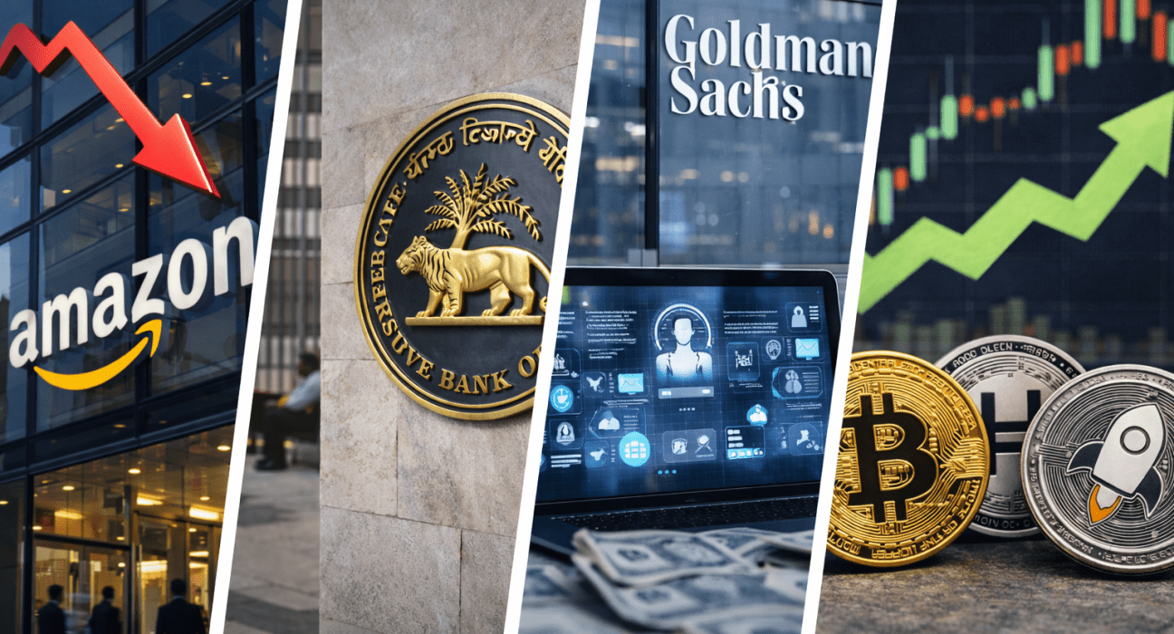 Markets remained on edge through the week, with Big Tech spending fears, central-bank signals, and a sharp crypto rebound colliding in a volatile session. Amazon shares slid on alarm over massive AI capital spending, while India’s central bank stood pat on rates, striking a steady tone on growth. Wall Street also digested Goldman Sachs’ push